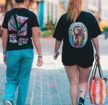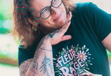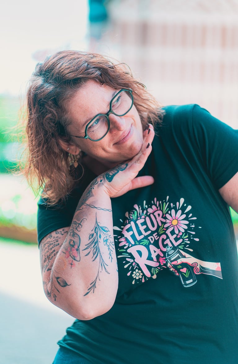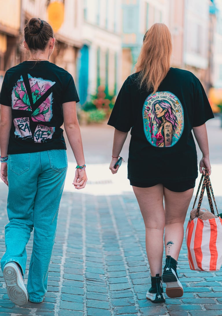 Mais un jour, j’ai compris que je pouvais transformer ça en force. Alors j’ai voulu créer des visuels qui me ressemblent. Des messages forts, que j’ai toujours portés en moi. Des pièces qu’on enfile comme une armure douce. Des fringues dans lesquelles je me sente libre — peu importe la taille — juste un tee-shirt à message, un jean, des baskets, et c’est moi. C’est simple, brut, vivant.